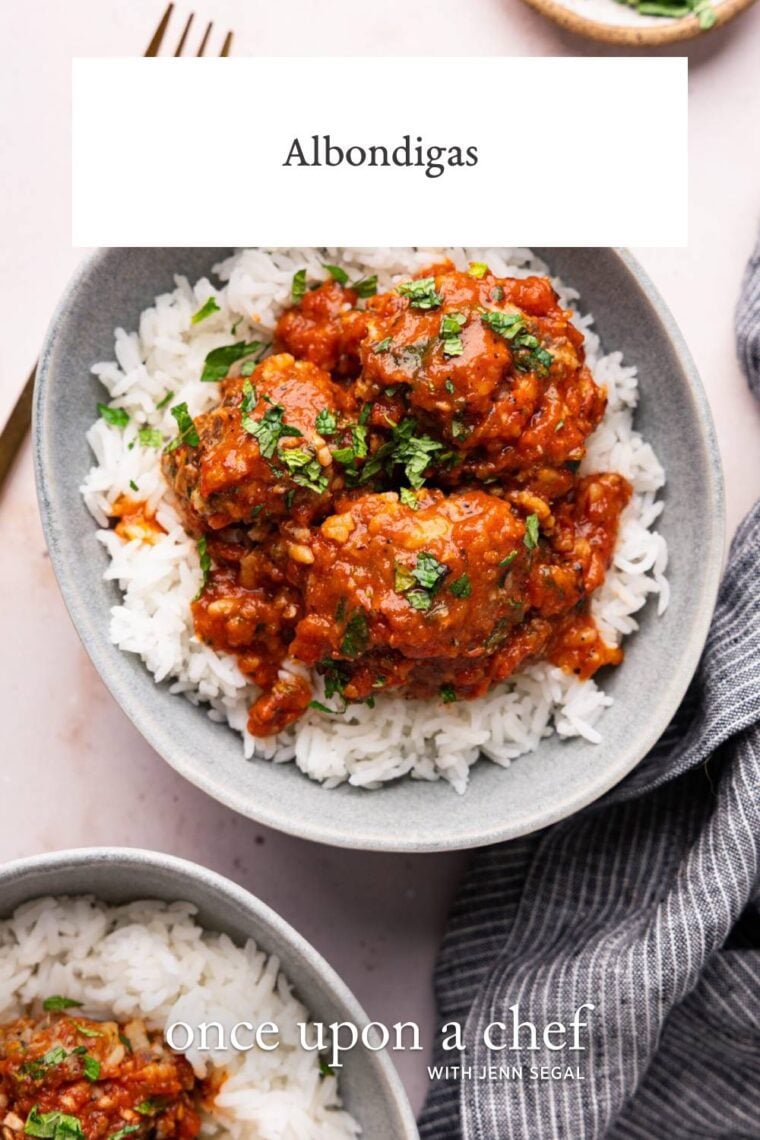 Albóndigas are tender Mexican meatballs packed with flavor. Here, they’re simmered in a smoky chipotle-tomato sauce adapted from Rick Bayless that comes together quickly in the blender. Similar to my albóndigas soup, the meatballs are made with rice mixed right in, which gives them a light, fork-tender texture, much like breadcrumbs do in Italian meatballs. I love serving them over rice to soak up all that delicious sauce—it’s an easy dinner that feels a little special.