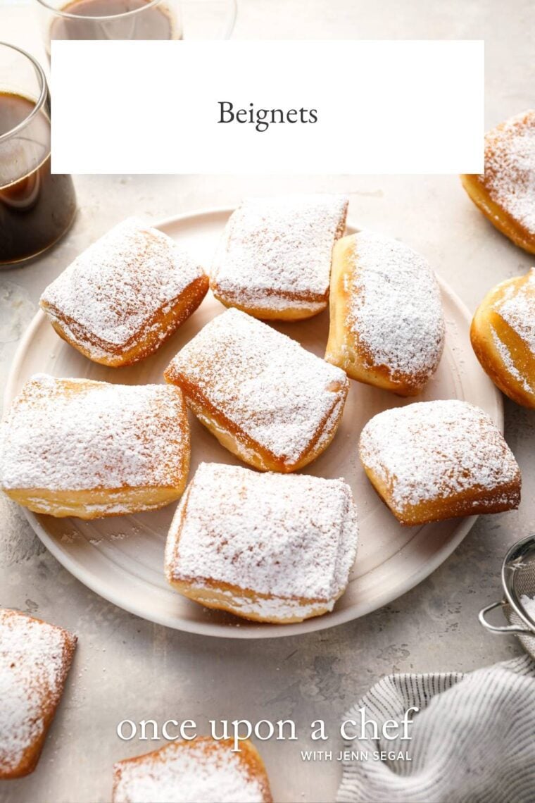Step 6: Dust and serve. Transfer the beignets to the paper towel–lined sheet to drain. While still warm, dust the beignets generously with confectioners’ sugar using a fine sieve (dusting them while warm helps the sugar stick). Serve them right away and enjoy!