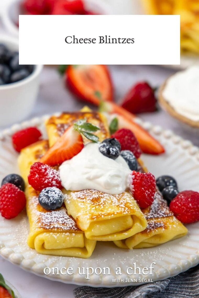 Step 7: Serve. Dust the warm blintzes with confectioners’ sugar and serve with sour cream, fruit, or jam.