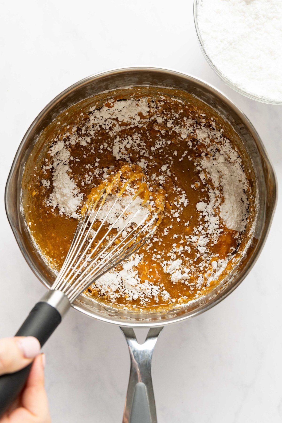 • It’s very important to sift the sugar to prevent lumps in the fudge. You can use a sifter or a fine-mesh sieve—either one works.