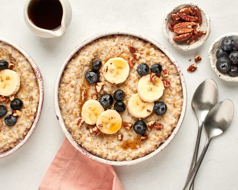 This super creamy steel cut oatmeal, mixed with maple syrup, currants and coconut, is comforting and filling.